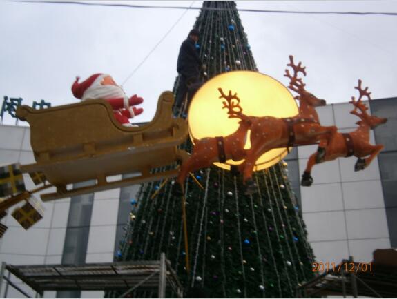 這是圣誕雕塑——空中掛著(zhù)一輪明月,圣誕老人趕著(zhù)馴鹿,拉著(zhù)裝滿(mǎn)玩具和禮物的雪橇,挨家挨戶(hù)給每個(gè)孩子送禮物!另外還有一棵掛滿(mǎn)了彩燈的巨大圣誕樹(shù)!這樣的畫(huà)面無(wú)比溫馨,給人們帶來(lái)許多美好的遐想!圣誕老人已經(jīng)成為圣誕節最受喜愛(ài)的象征和傳統,他快樂(lè )老精靈的形象已深深地留在人們的記憶中。
